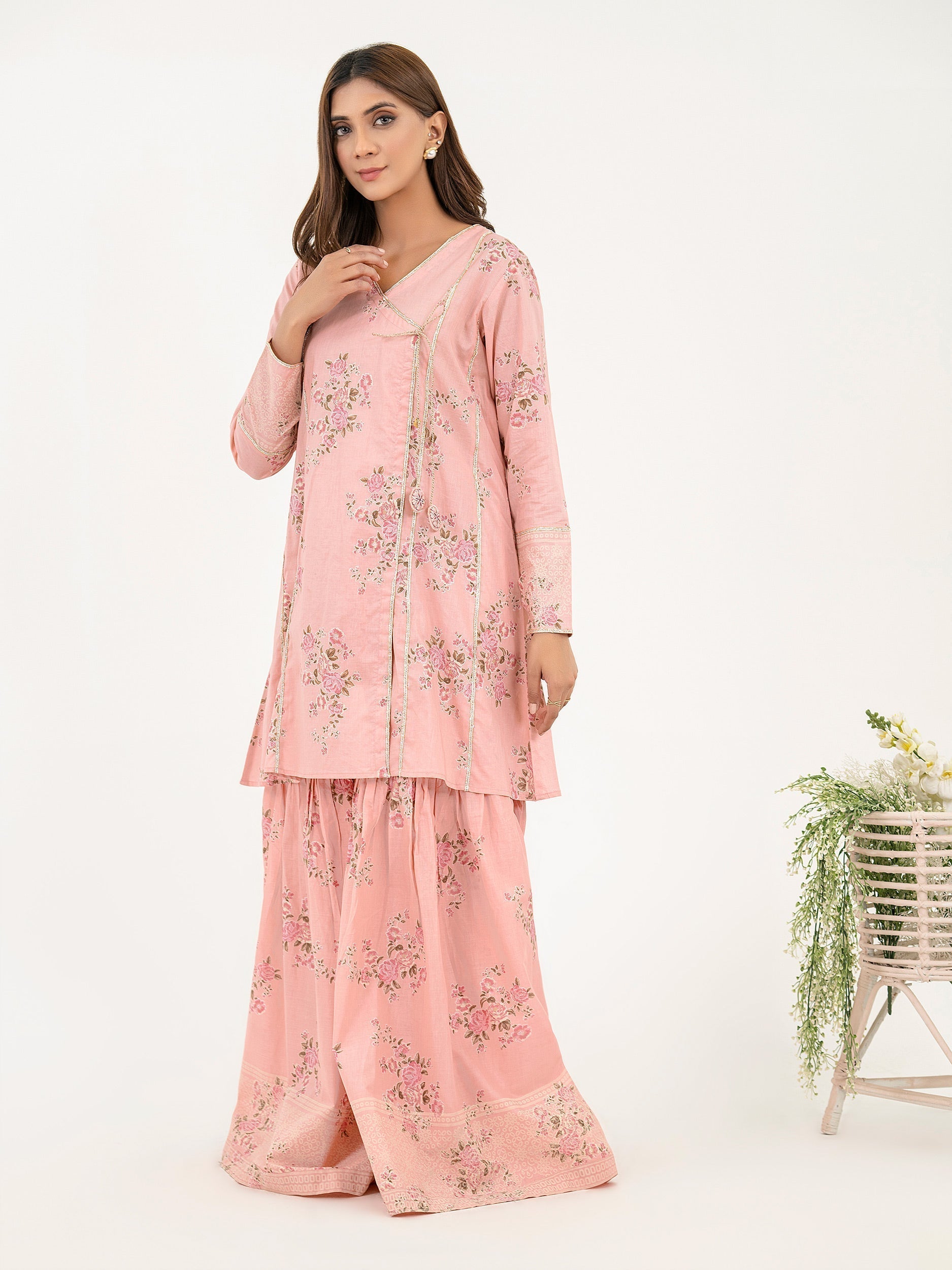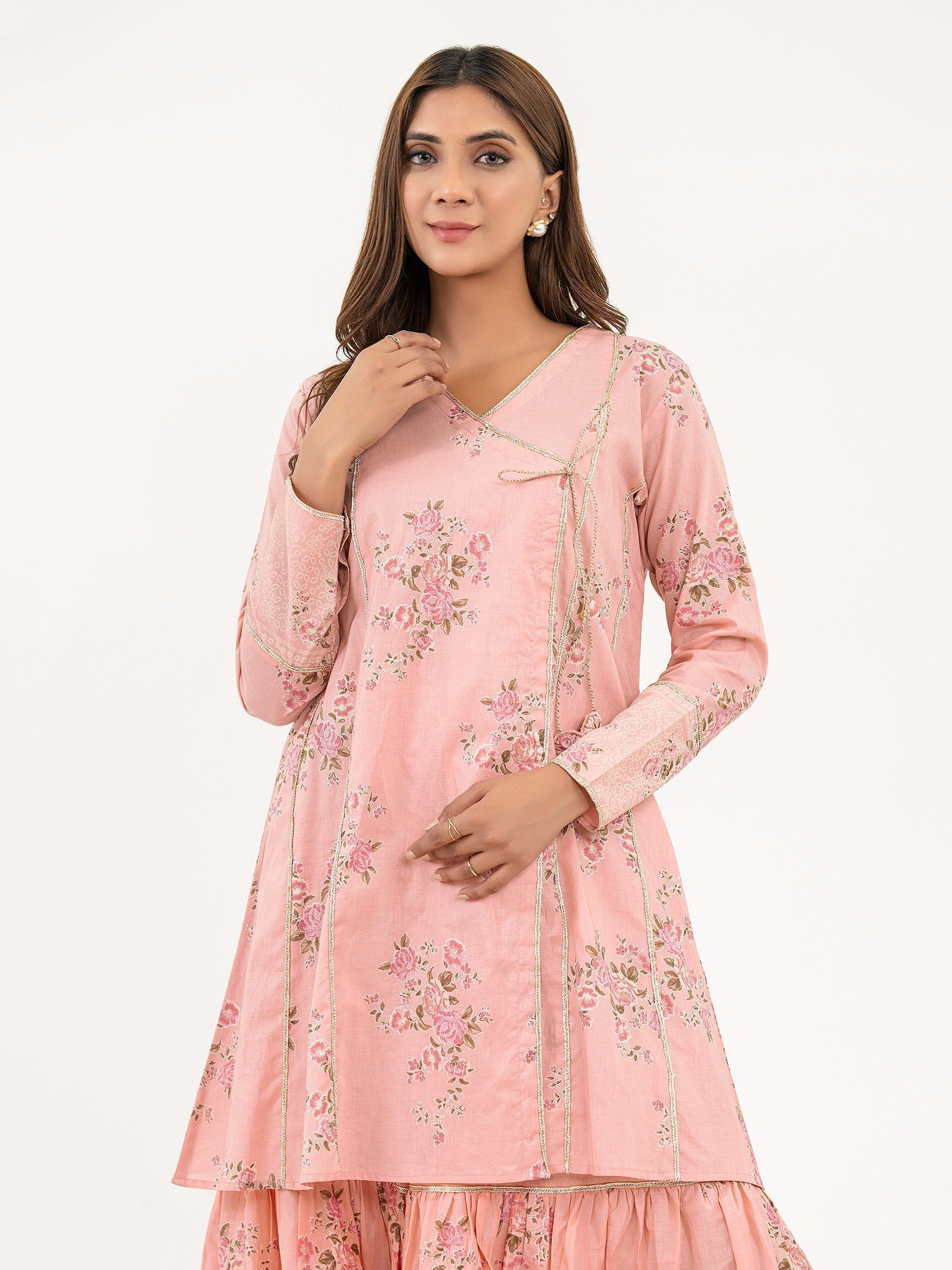 - Printed angrakha style shirt with lace detailing and dori tassel