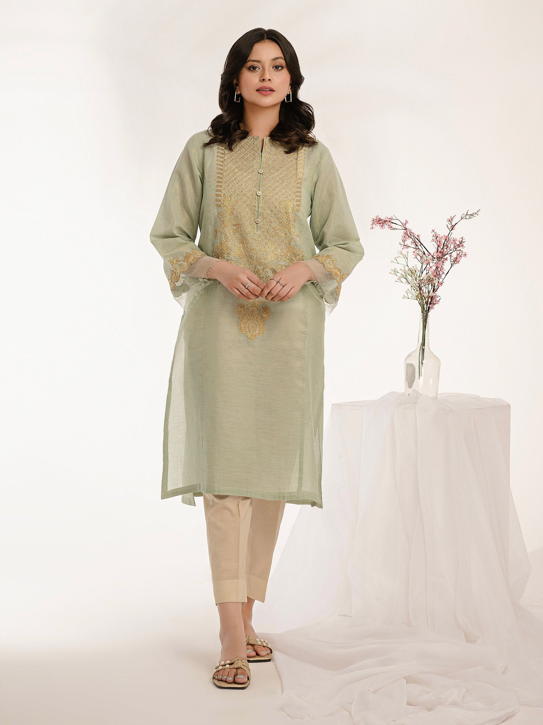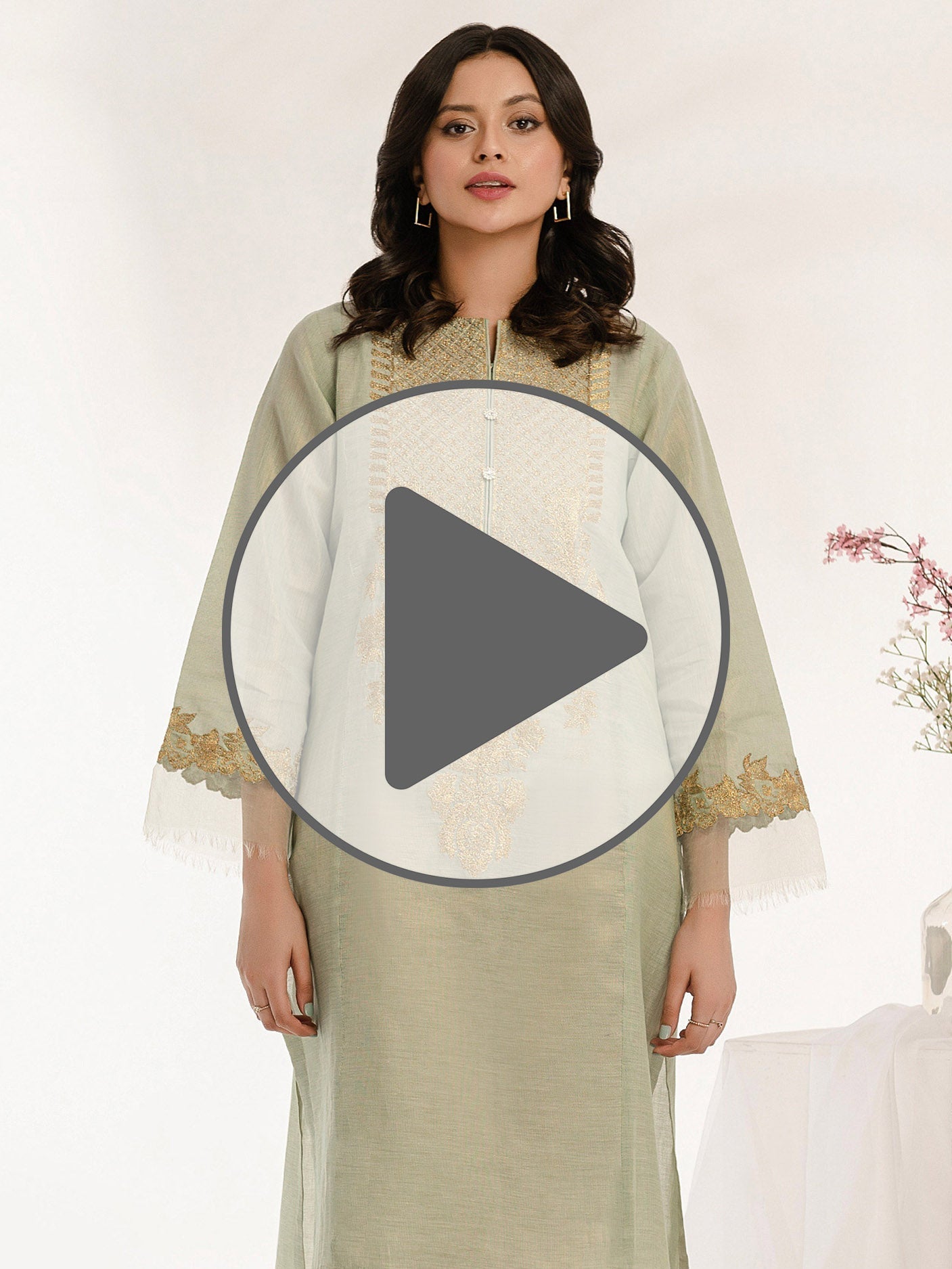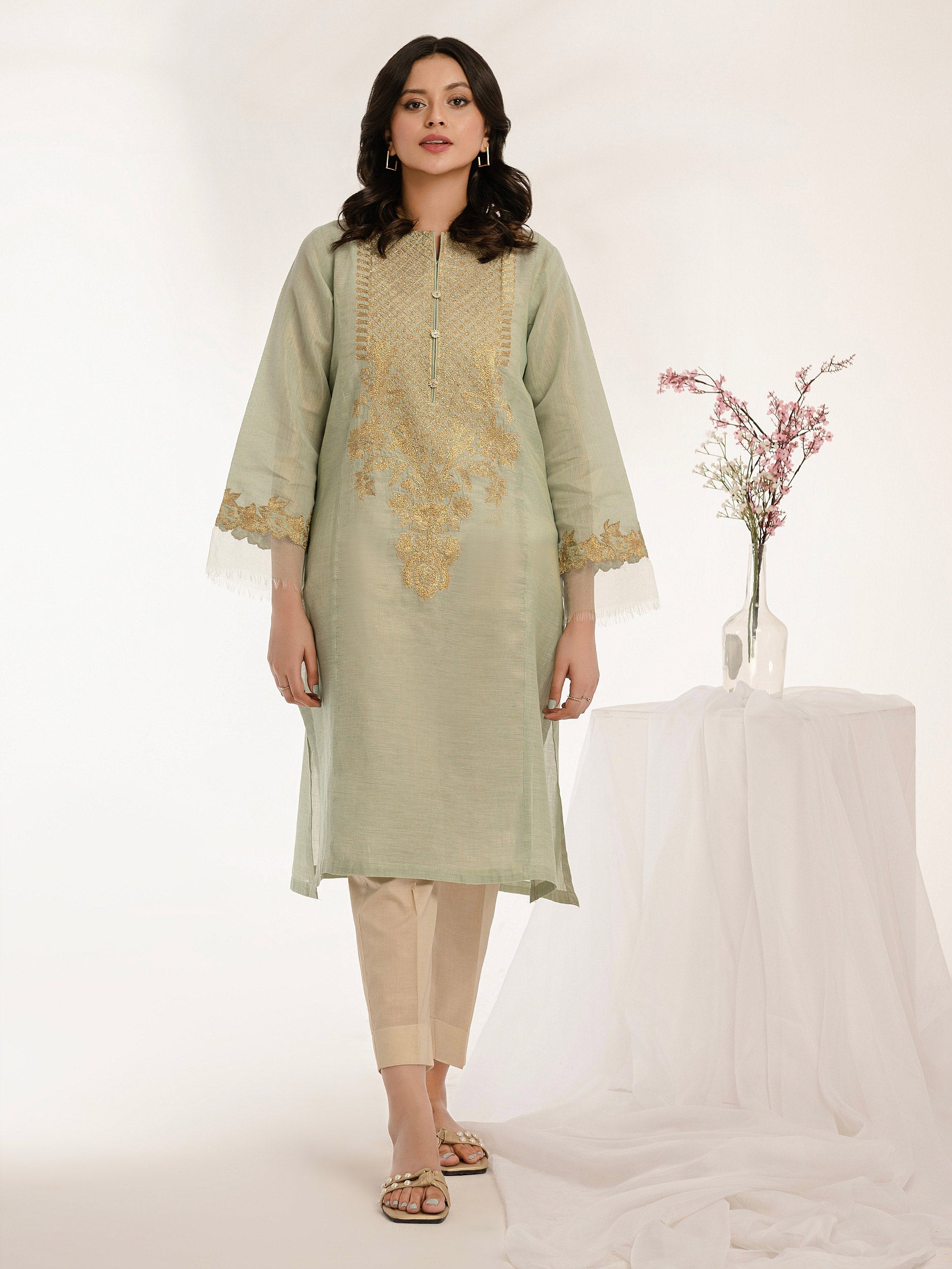 - Dyed panelled shirt with embroidery and rhinestone embellished buttons on the placket