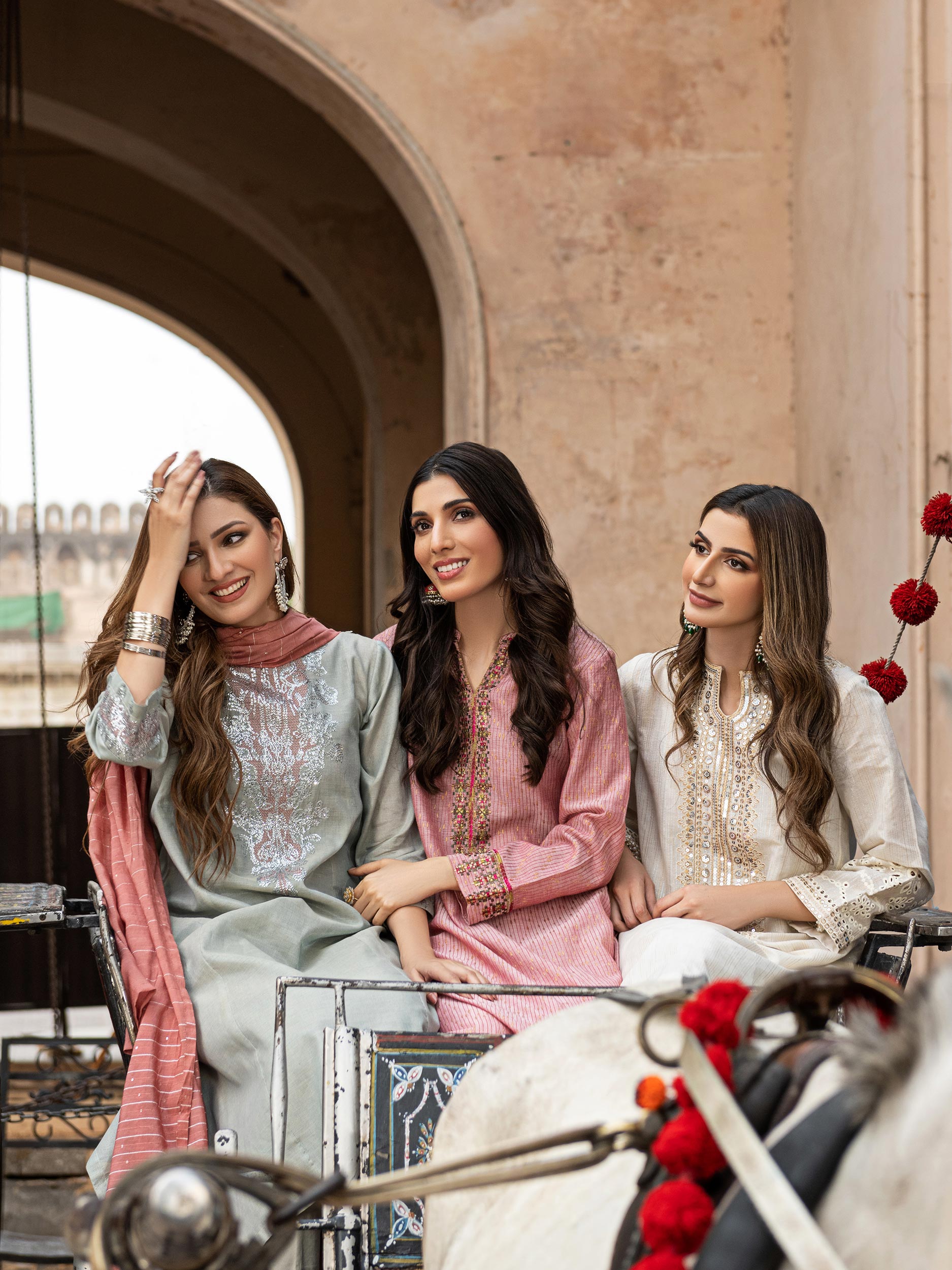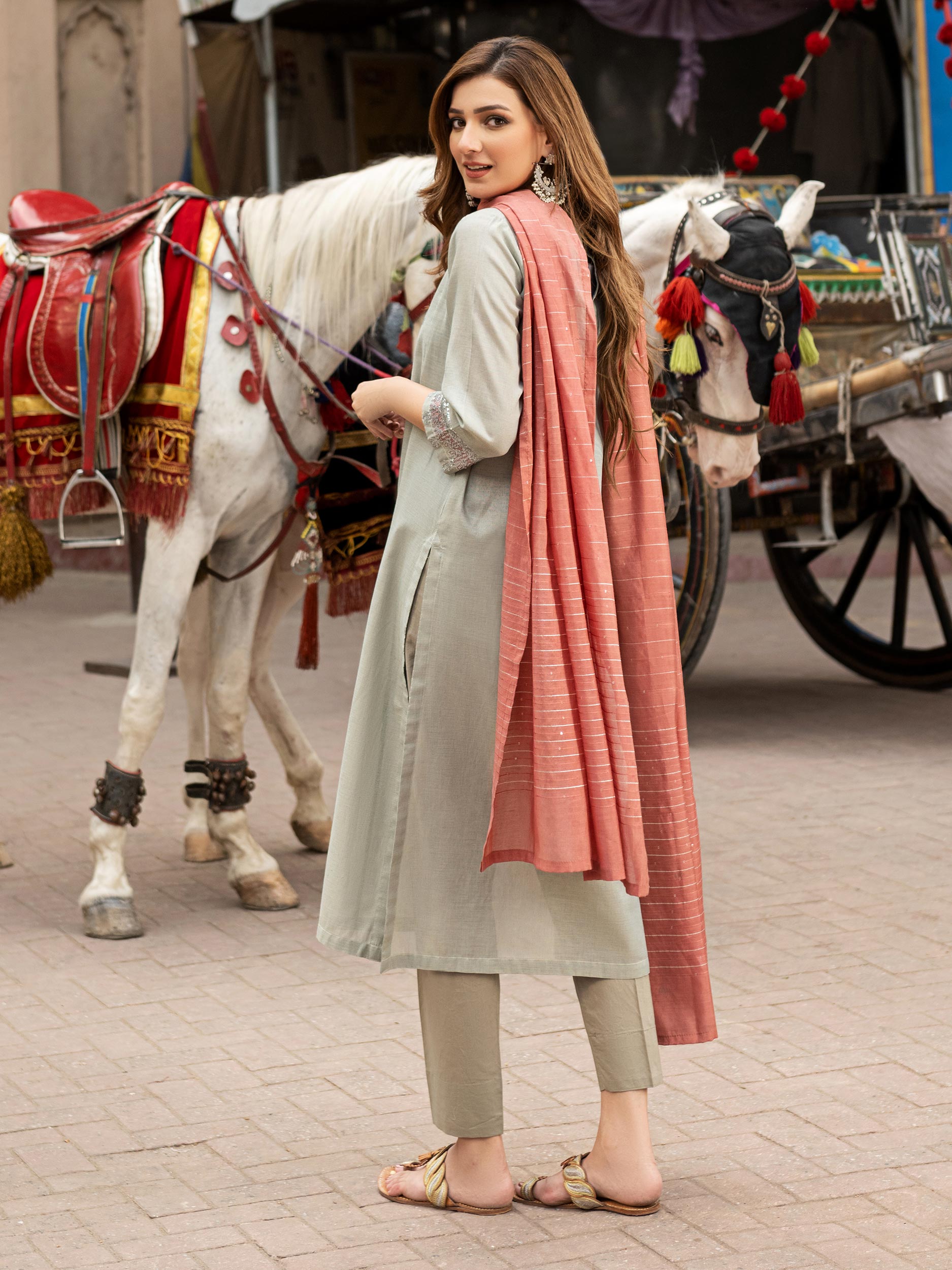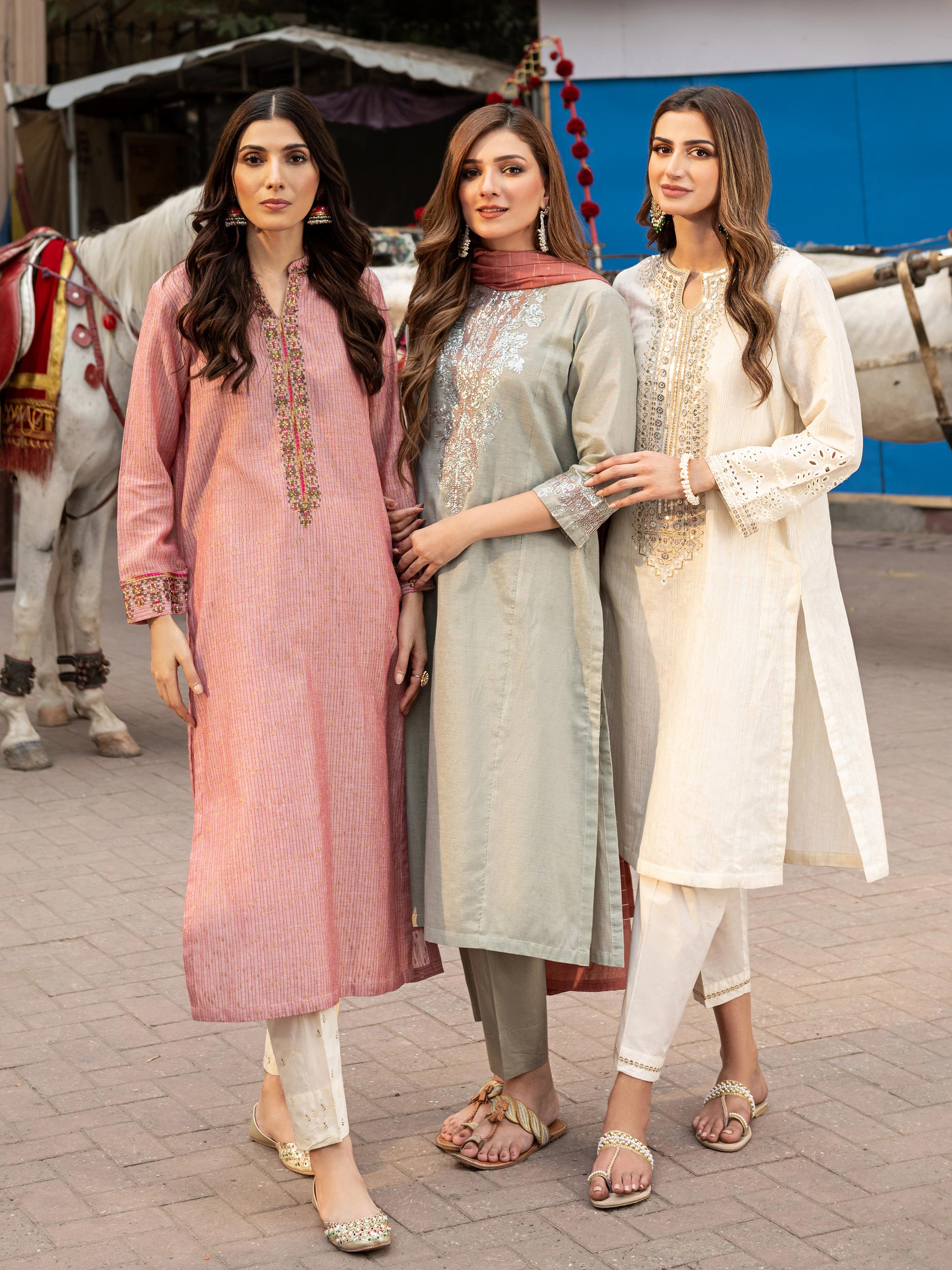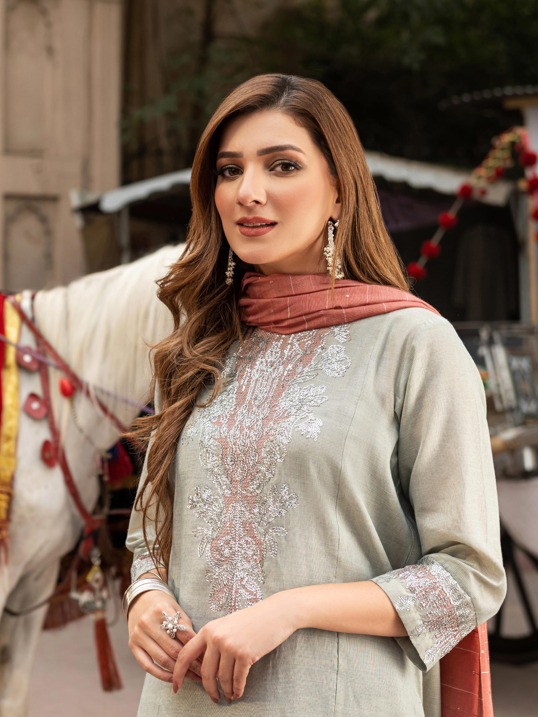 - Dyed A-line shirt with sequins embroidery on neckline and cuffs